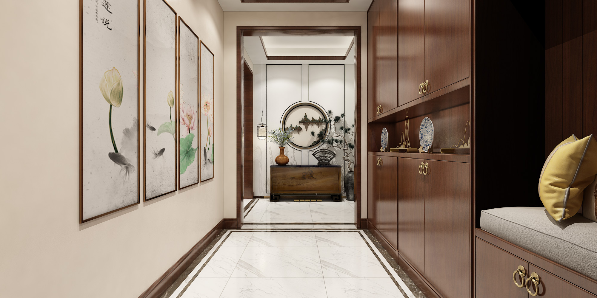 本案的別墅設(shè)計采用了新中式的裝飾風格,公共區(qū)域是以實木色調(diào)的家具和具有中國特色元素的裝飾來打造,有一種悠遠、寧靜的文化韻味。二三層私密空間主要是以現(xiàn)代輕奢的風格,簡約的線條結(jié)合色彩更為突出了整個空間的靈動性。同風格案例:更多>>