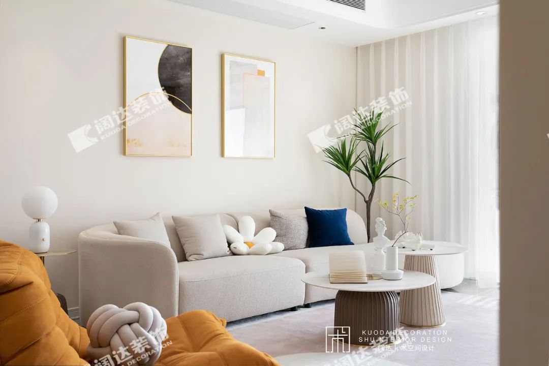 初印象樸實無華的線條,勾勒出簡約實用的空間,奶油色的主體色,奠定了明亮溫馨的氛圍,希望凝練了空間大多色彩的潘多拉,能給居住者帶來好運。