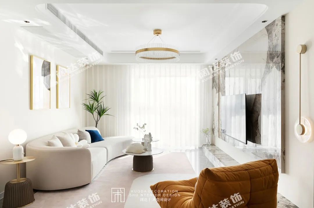 本案充分體現了家庭居住空間的輕松與溫馨感。空間內多處運用弧線造型,同時搭配圓潤的家具,營造出安全、舒適、愉悅的家庭氛圍。
