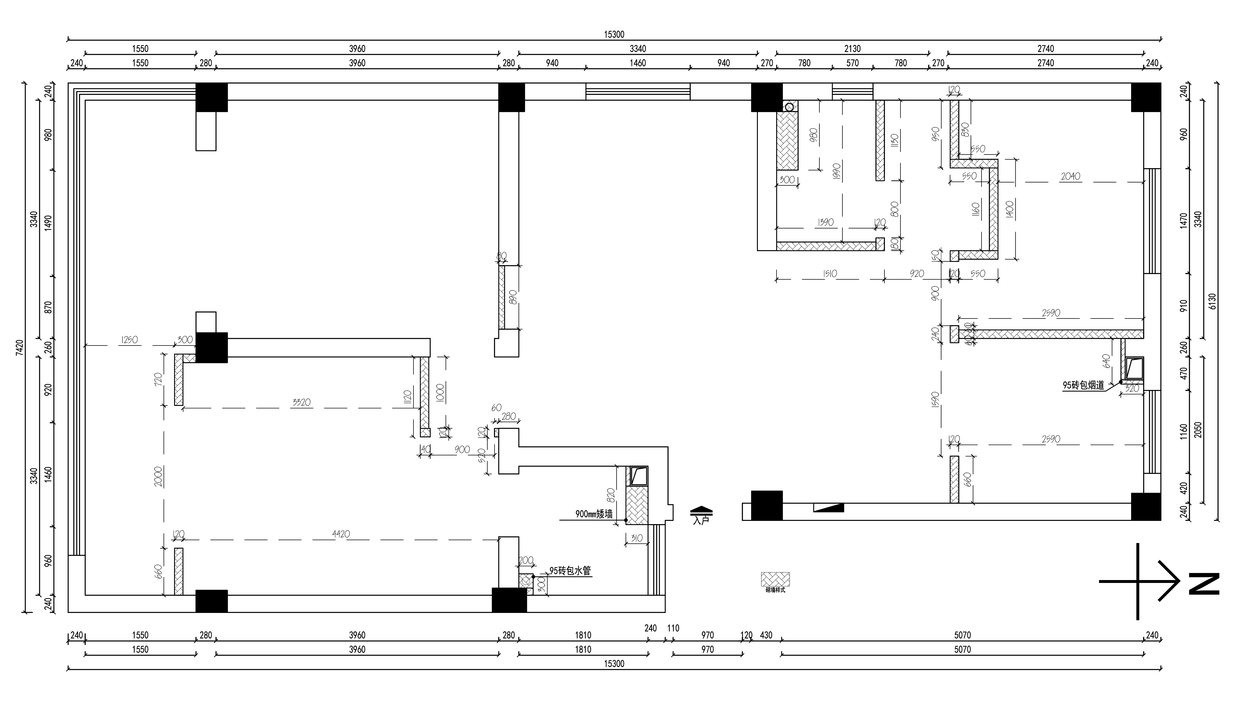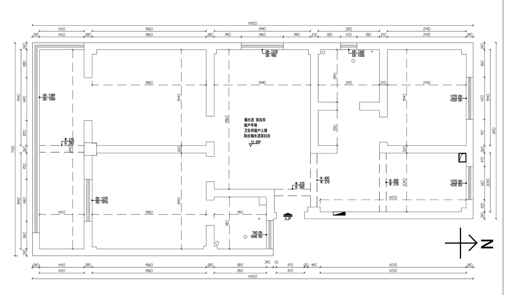 4、拆除北側(cè)臥室正對(duì)的墻體(干區(qū)墻體)