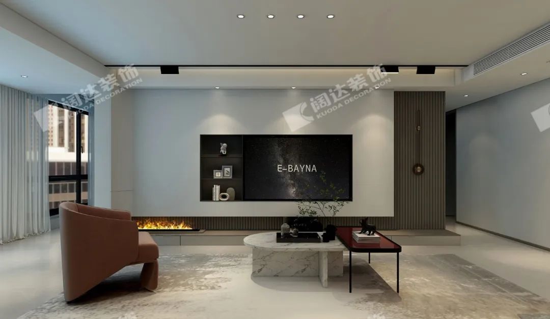 本案用簡潔的木制格柵材質做主背景,流露出生活的溫度,傳遞著居住者對美好生活的向往。簡約格局呈現出現代居家生活的精致、舒適與自由。